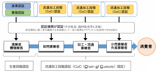 | 認証種類 | 漁業認証、養殖認証、流通加工段階(CoC)認証 |