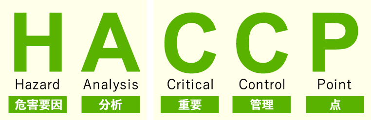 Hazard Analysis and Critical Control Point(危害要因分析重要管理点)の略で、 食品の製造・加工・流通の各段階で、安全を確保するための衛生管理手法です。